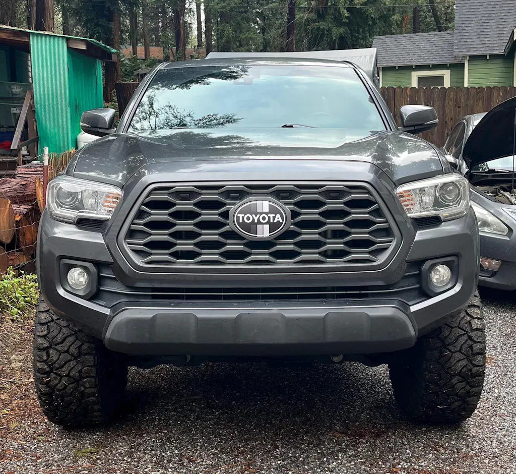 2018-2023 Vintage Toyota Tacoma Grey-Striped Front Emblem Vinyl Overlay